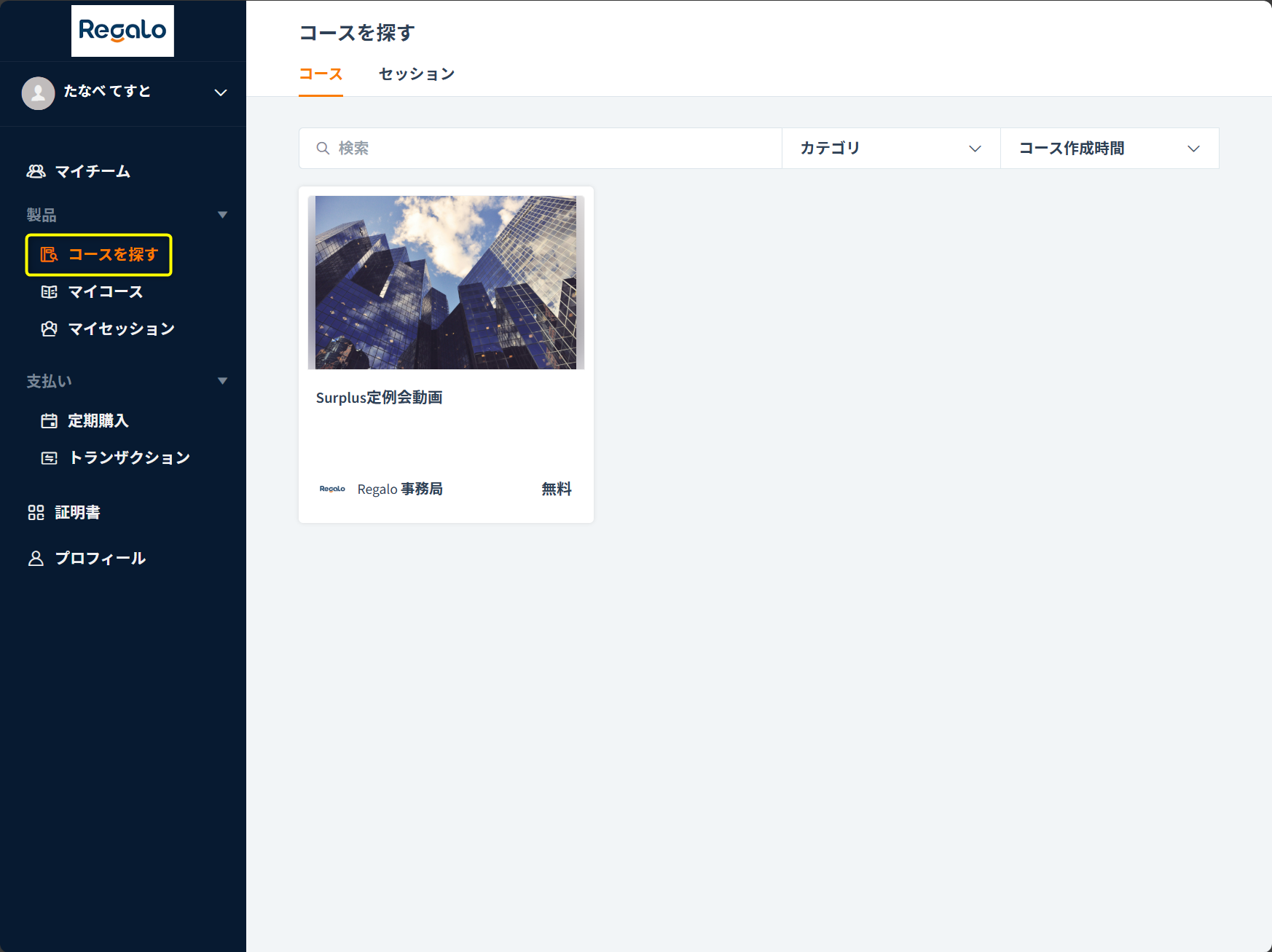 その1つ上にある、📘コースを探す をクリックすると、定例会動画の視聴が可能となります。